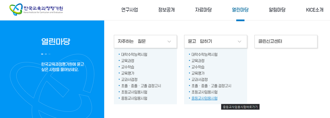 - 한국교원과정평가원에서 기출문제 확인!